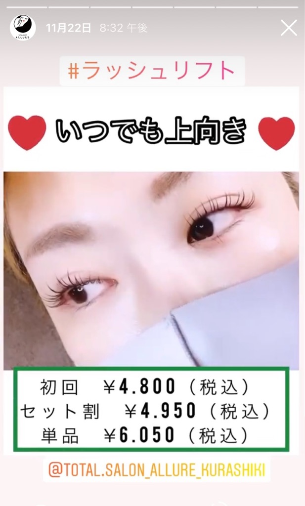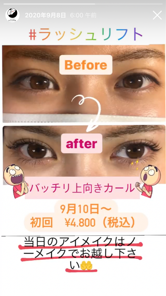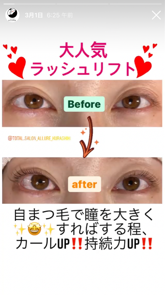 ラッシュリフトでいつでも上向きまつ毛へ♪
