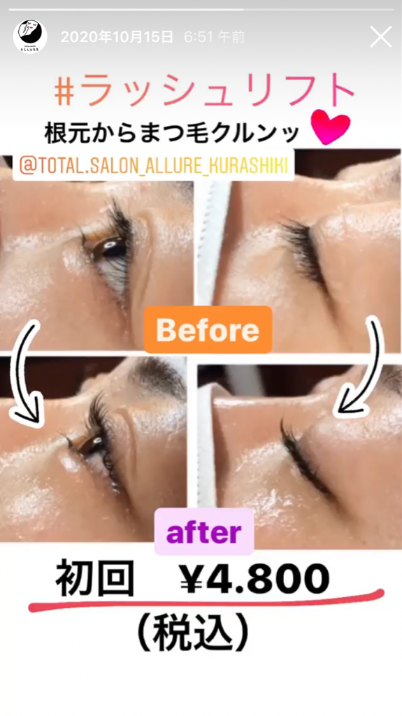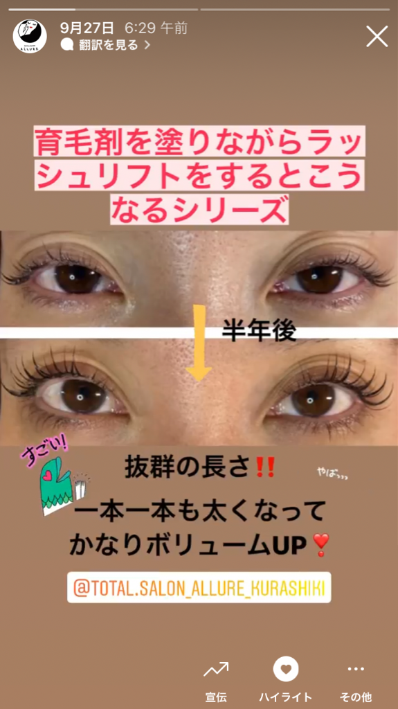 ラッシュリフトの施術例